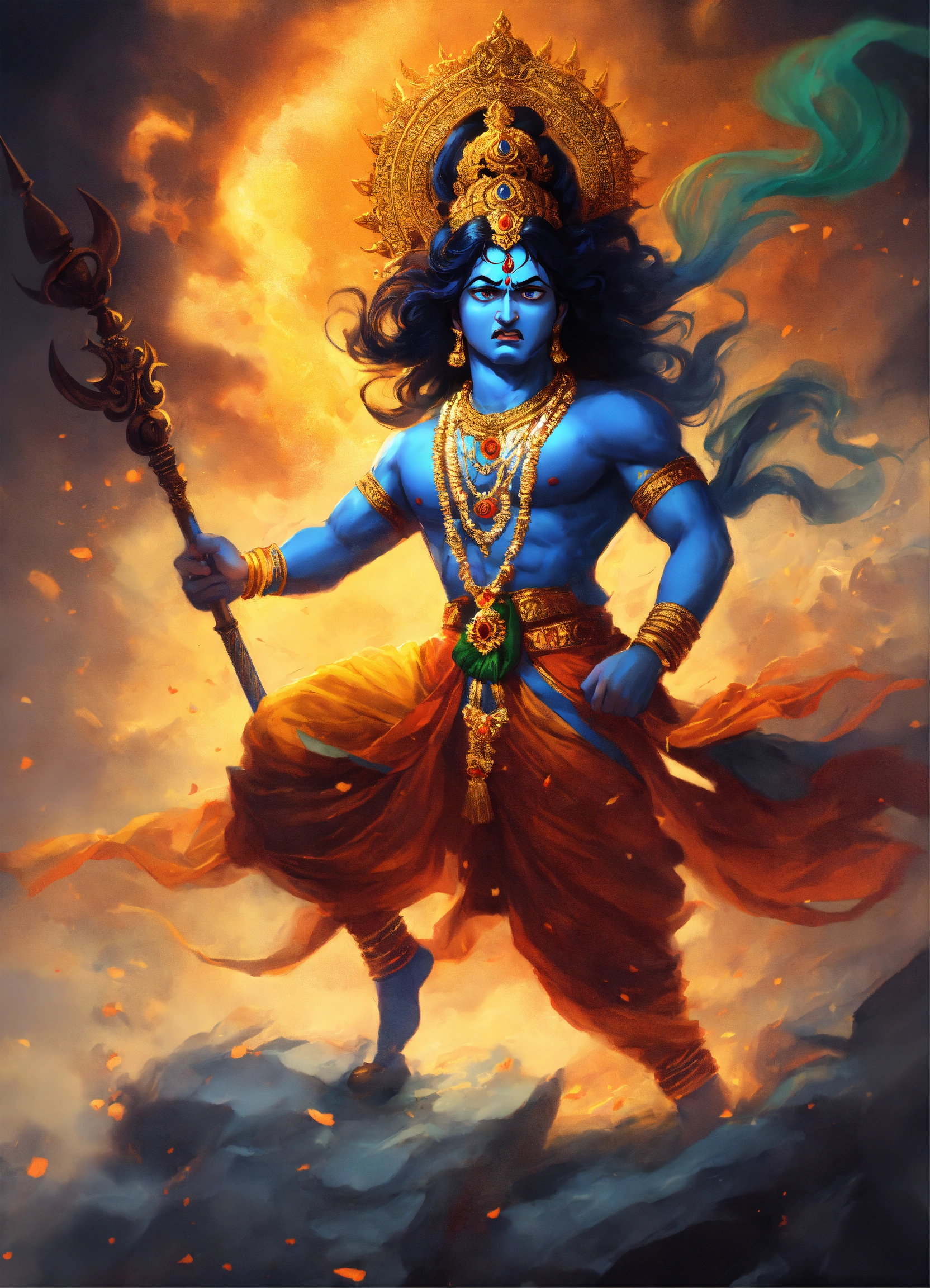 Lord Krishna, Angry, In a WAR, fierceful Krishna expresses a fierce desire to attack and destroy Duryodhana